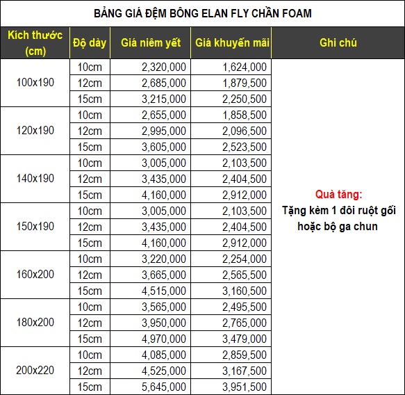 Đệm Bông chần Fly là dòng sản phẩm được nhiều người chuộng do thiết kế áo đệm gấm dày dặn. Bên cạnh ruột bông được làm từ những sợi cotton và polyester, đệm có thêm lớp PU Foam đàn hồi cao để tạo sự thông thóang và êm ái cho người nằm. Sản phẩm có thể gập 2 mảnh để tiện di chuyển và xếp gọn gàng khi sử dụng xong.