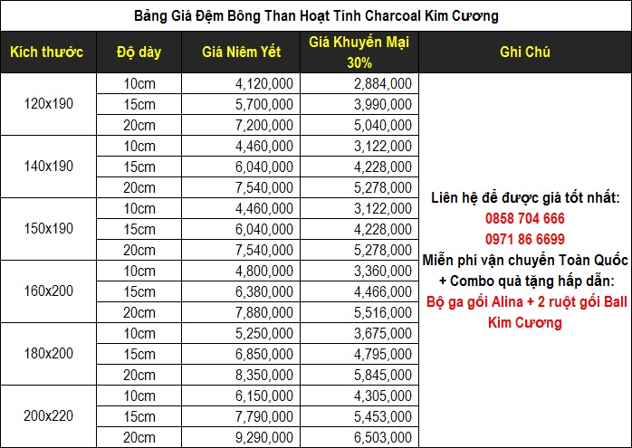 Đệm bông than hoạt tính Kim Cương Charcoal