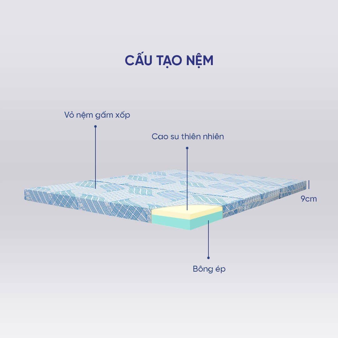 – Khác với đệm cao su thường, dòng sản phẩm này sở hữu thêm lớp ruột bông nhập từ Hàn Quốc, tạo độ đàn hồi cân bằng (giữa cao su và bông), có tác dụng hỗ trợ nâng đỡ cột sống tối ưu đồng thời cải thiện tuần hoàn máu.