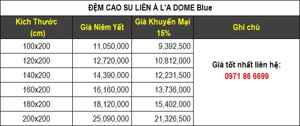 Trải nghiệm nệm cao su L'A Dome Blue 10cm từ 100% cao su thiên nhiên, mang đến sự nâng đỡ tối ưu và độ bền vượt trội với thiết kế mới nhất.