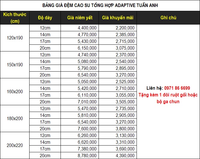 - Độ dày: 12 cm, 15cm, 17 cm, 20cm