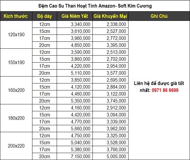 - Nệm cao su tổng hợp Amazon Kim Cương có độ bền cao từ 10 năm