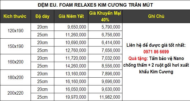 Xem thêm: Đệm EU. Foam Maxsun Kim Cương