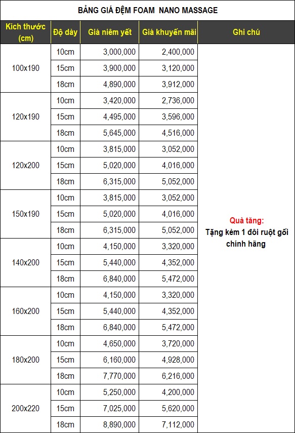 - Độ dày tiêu chuẩn: 10cm,15cm, 20cm