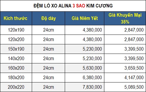 Cấu tạo đệm lò xo Alina 3 sao Kim Cương