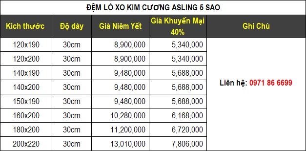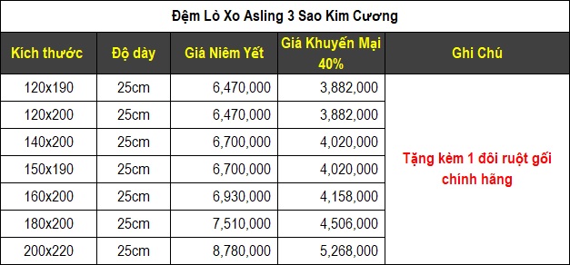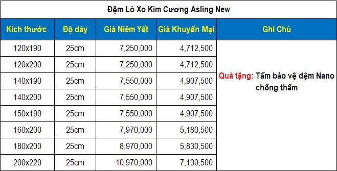 6 . Đệm lò xo Asling 5 sao Kim Cương