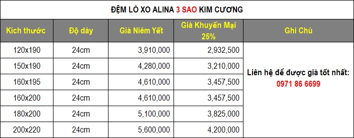5. Đệm lò xo Alina 3 sao Kim Cương