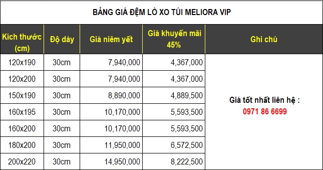 7. Đệm lò xo túi độc lập Meliora Vip