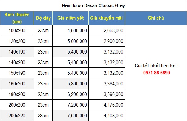 - Đệm lò xo Desan Classic là dòng sản phẩm cho các bạn ở mọi lứa tuổi mà muốn trải nghiệm đệm lò xo với giá cả phải chăng và tính thiết kế theo phong cách đơn giản.