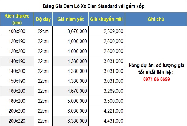 - Đệm lò xo Standard là dòng sản phẩm cho các bạn ở mọi lứa tuổi mà muốn trải nghiệm đệm lò xo với giá cả phải chăng và tính thiết kế theo phong cách đơn giản.
