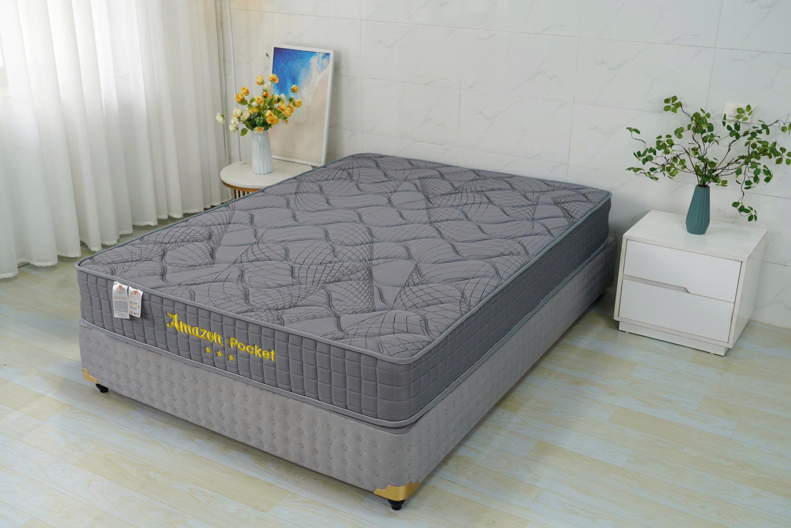 + Hệ thống lò xo túi độc lập được làm bằng thép chống gỉ xoắn trong nhiệt độ cao, đảm bảo độ dẻo dai, khả năng chịu áp lực cao.