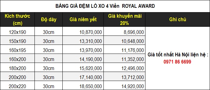 Một số hỉnh ảnh sắc nét về đệm lò xo Túi 4 Viền Royal Award
