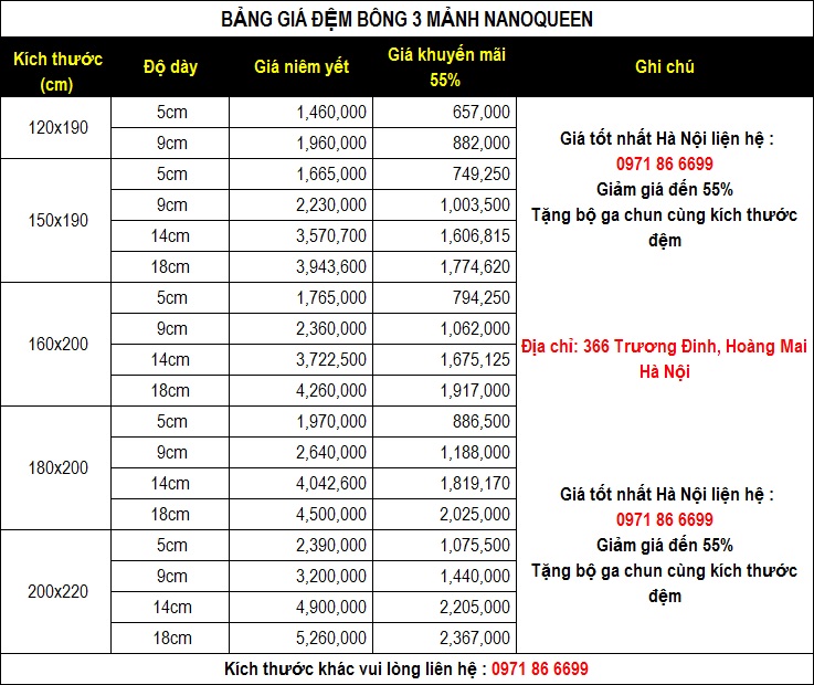 Đệm bông ép NaNoQueen: Ưu đãi 55% +  Bộ ga chun cotton Poly