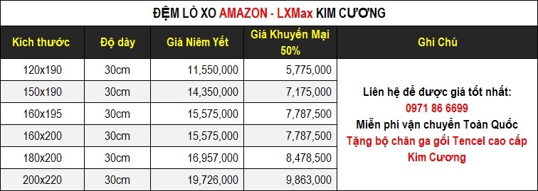 8. Đệm lò xo Amazon - LXMax Kim Cương