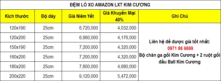 7. Đệm lò xo Amazon - LXT Kim Cương