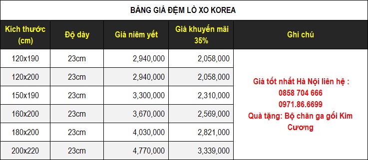 Đệm lò xo Korea: Ưu đãi 35% + ComBo quà tặng ( 1 Bộ ga gối Alina Kim Cương)