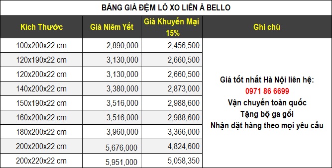 Xem thêm: đệm lò xo Liên Á, đệm lò xo Hanvico, đệm lò xo Dunlopillo